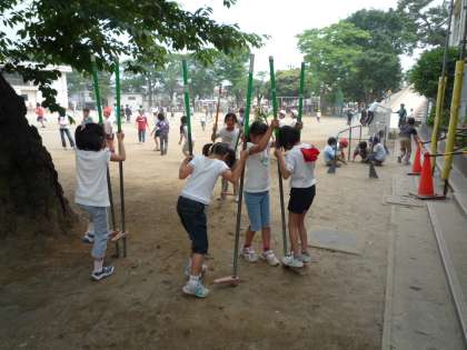 竹馬や一輪車などのバランス系の遊具の人気が女の子を中心に根強くあって、休み時間は遊び道具を手に入れるのが大変です。子どもたちは、毎日コツコツ練習を重ね、友達の様子を見たり、教えあいをしたりしながら上達して行きます。