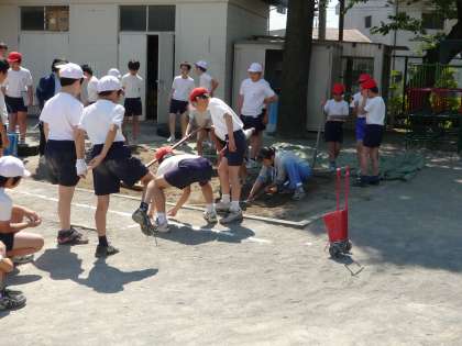 今日の1,2時間目、5,6年生全員がスポーツテストを実施しました。ソフトボール投げ、立ち幅跳び、反復横とびなどの種目を、クラスごとに回って実施していました。どの子も自分の体力の程度を知ることができるので真剣な様子でした。