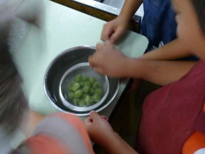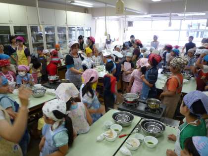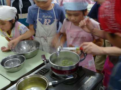 4月末に3年生全員で多摩川に出かけて採ってきたよもぎを、今日解氷して、よもぎ団子を作りました。子どもたちでは大変ですので、お母さんたちに助けてもらって、団子作りに取り組みました。とてもよもぎのいい香りが家庭科室にただよっていました。子どもたちが多摩川の自然を体験できたとてもいい総合的な学習の時間でした。