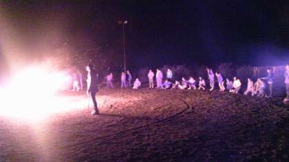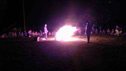 6時を過ぎると辺りは真っ暗。そんな中で、みんなが楽しみにしていたキャンプファイヤーが始まりました。火の神の登場から始まり、ゲームあり歌あり踊りありの楽しいひとときを過ごしました。キャンプファイヤー係がとても一生懸命仕事をしてくれて、みんなも協力して盛り上げてくれて、思い出に残ったことと思います。