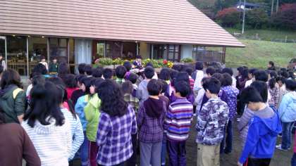 3日目の朝を迎えました。ひんやりした朝の空気のもと、秋晴れの朝会を行いました。