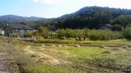 川場の村めぐりをしました。世田谷区とは違う風景や空気の中、椎茸栽培の様子やリンゴ園を見て回りました。途中の宮田リンゴ園で、リンゴ栽培の様子や村の様子を宮田さんから聞くことが出来ました。