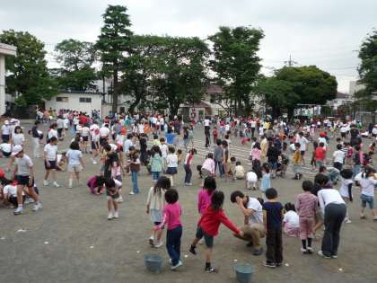 全校朝会のあと、運動会に備えて、全校児童で校庭の石拾いを行ないました。わずかな時間でしたが、750人の手を使えば、あっという間に小さな石ころを集めて捨てることができました。