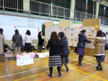 今日、10時から瀬田小学校体育館で、第7ブロック研修フェア2012が開催されました。本校からは、PTA研修委員会が「自分と子どものいいところ探し」について、600名近くの会員の回答結果をもとに、データを集計・分析し、とても面白いグラフや回答内容をまとめて発表してくれました。7ブロックの他の学校のPTAの方もたくさん見学に来てくれて、かなりの盛況ぶりでした。1年間の研修委員会の皆様の活動ぶりに感謝いたします。