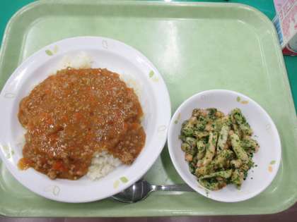 キーマカレーライス・青のりポテトビーンズ・牛乳