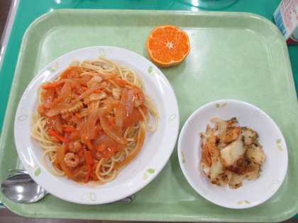 スパゲッティイタリアーノ・お好みポテト・みかん・牛乳