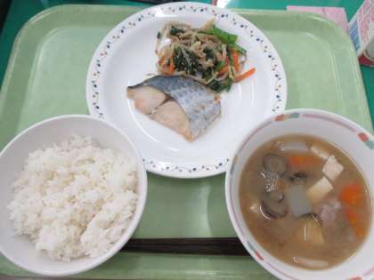 有機米・さわらの塩こうじ焼き・ごまあえ・豚汁・牛乳