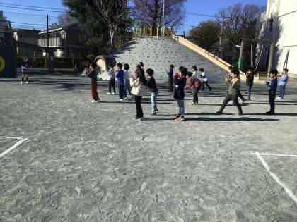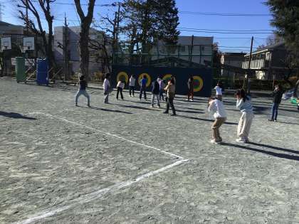 お楽しみ会は「ドッジボール」と「だるまさんがころんだ」の進化版?!「だるまさんが寝た。」「だるまさんが勉強した。」などをつけ、そのポーズをしながら止まります。
