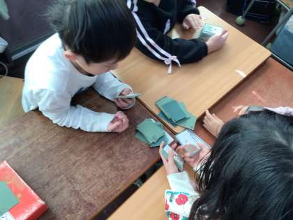言って良い言葉は、「ひめ」「との」「おぼうさん」の3つだけ。初めての子どもがほとんどでしたが、ルールは簡単!すぐに覚えました。蝉丸は「殿?」「お坊さん?」「姫ではないよね?!」時代を繋いできた昔遊びの時間を楽しみました。