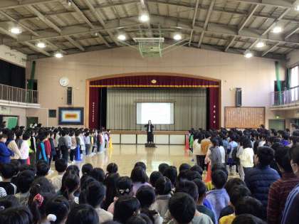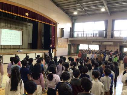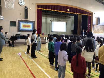 「まっかな太陽 沈む砂漠に 大きな怪獣が のんびり暮らしてた・・・」1970年代に作られた「怪獣のバラード」の歌声が体育館いっぱいに溢れました。