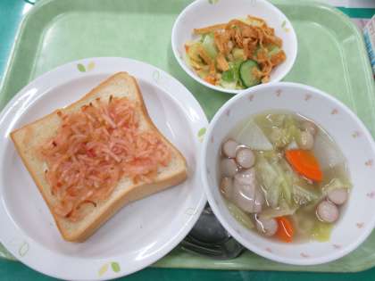 リンゴバタートースト・大根のポトフ・カリカリ豆のサラダ・牛乳