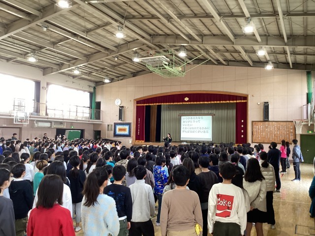 残り少なくなった音楽朝会。みんなで心を込めて歌いました。