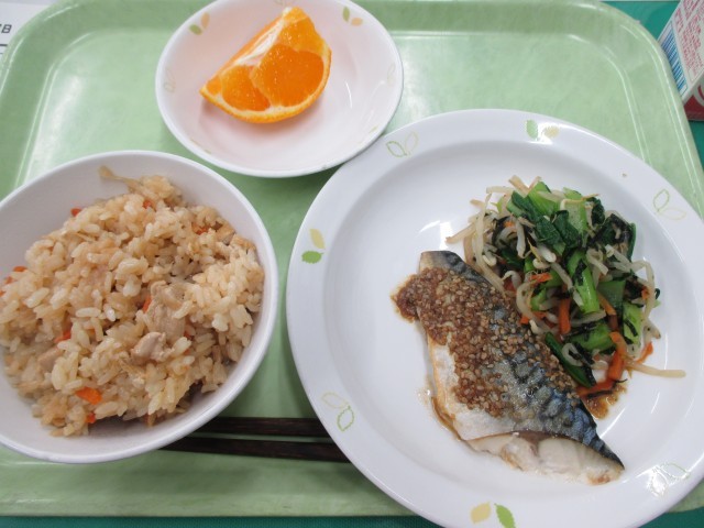 切り干し大根のごはん・さばのごまだれやき・のりあえ・デコポン・牛乳