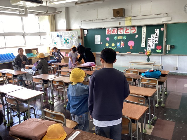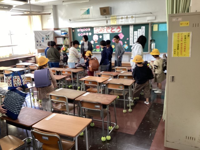 通常の登校が始まりました。当面は朝、6年生が1年生のお手伝いをします。6年生、頼りにしてますよ。