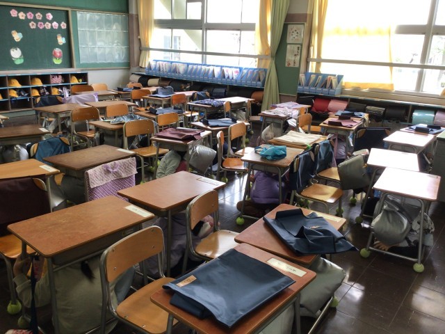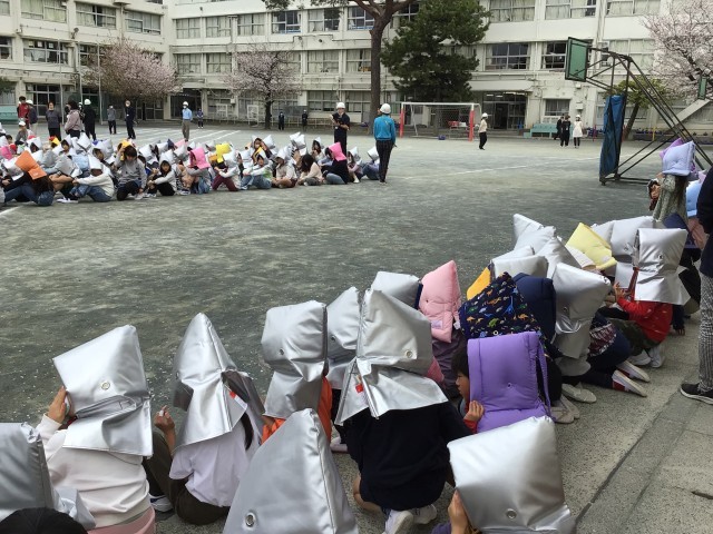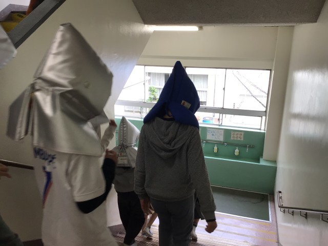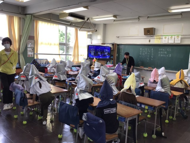 今年度最初の避難訓練(地震を想定)を行いました。1年生は、まずは避難の仕方を学ぶため基本的には見学ですが、防災頭布を被る、机の下に身を置く、先生の指示に従って静かに校庭へ避難、は行いました。1年生は、初めてとは思えないほど落ち着き、先生の指示にきちんと従えていました。校長先生からは「訓練は本番、本番は訓練」と思って行動しましょうというお話がありました。