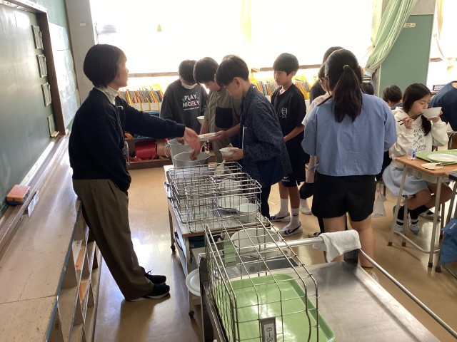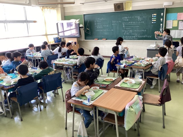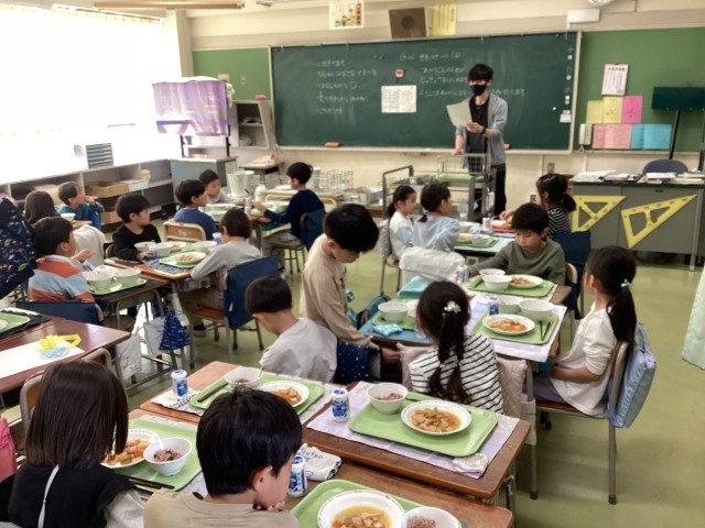 子供たちが楽しみにしていた給食が始まりました。2年生から6年生まで美味しそうに食べていました。