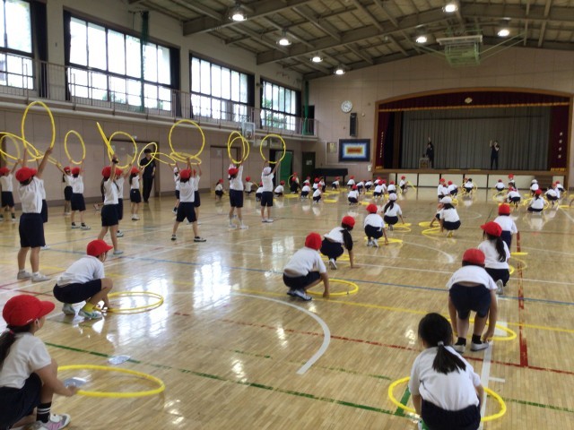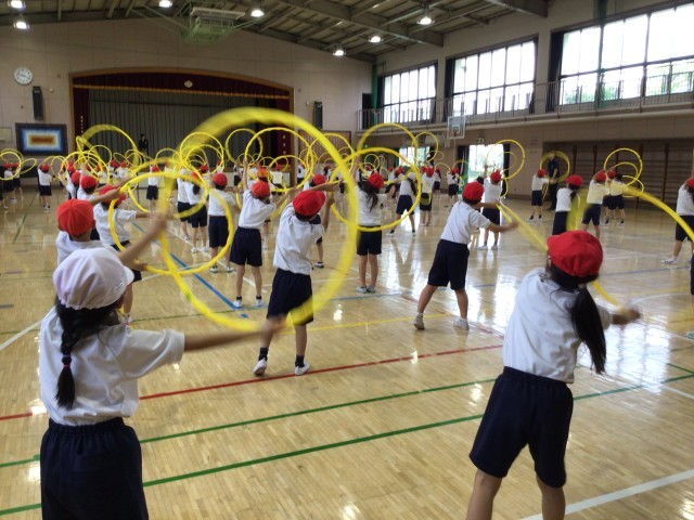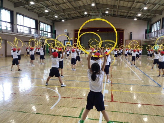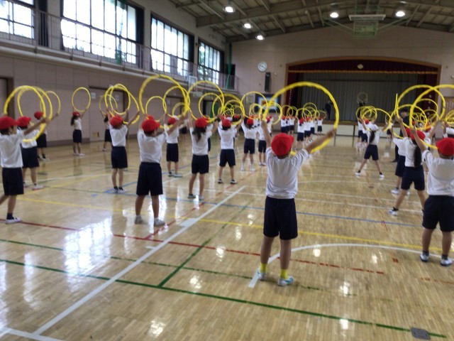 表現の練習が始まりました。フラフープを上手に操り、キビキビとした動きを見せてくれました。