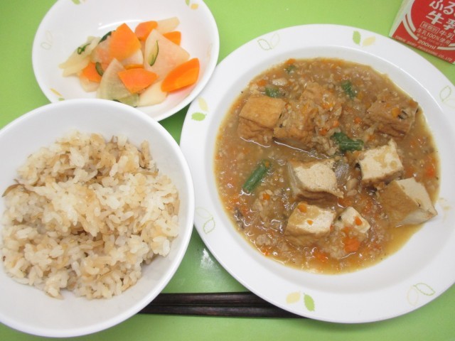 じゃこごはん・生揚げそぼろあんかけ・福神漬け風サラダ