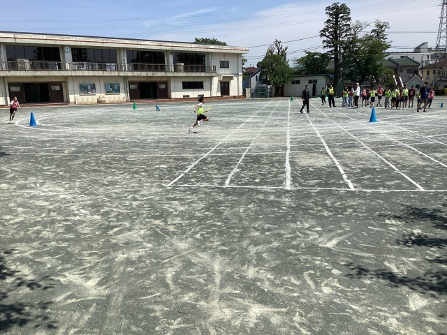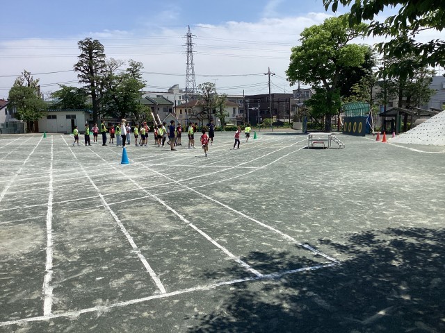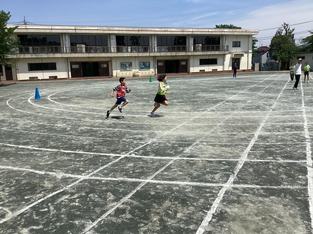 4時間目が終わったあと高学年リレーの練習をしています。当初は焦ってしまいバトンの受け渡しがうまくいかないことも。今週は練習の成果があらわれ、徐々にコツを掴んできたようです。