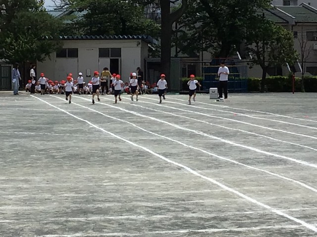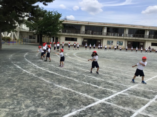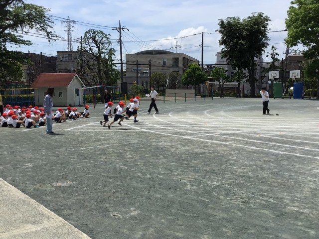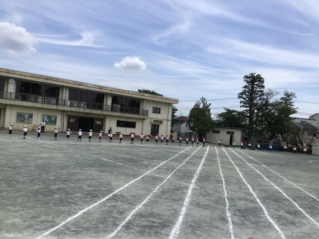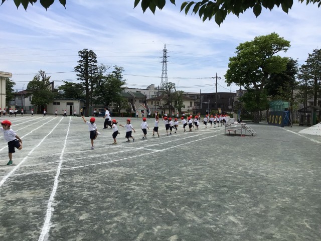 かけっこと表現の練習をしました。かけっこでは、スタートや走り方、ゴールをしてからのことを学びました。表現は、笑顔いっぱいで練習しています。