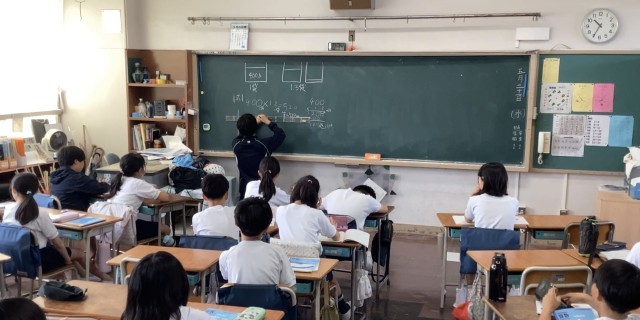 教育実習生として来ている学生が算数の授業をしました。将来の先生を育てるのも学校にとって大切な仕事です。