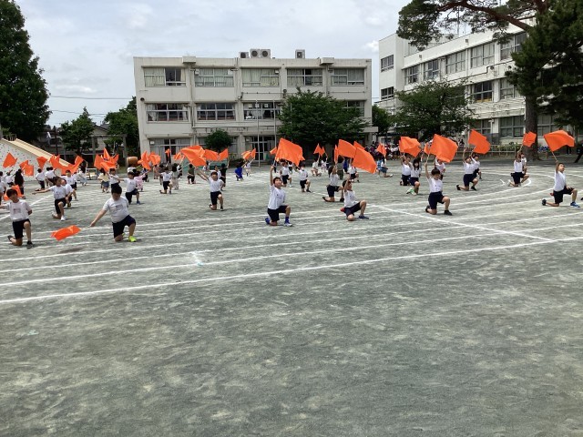 4・5・6年生のリハーサルの様子です。リレーも練習しました。