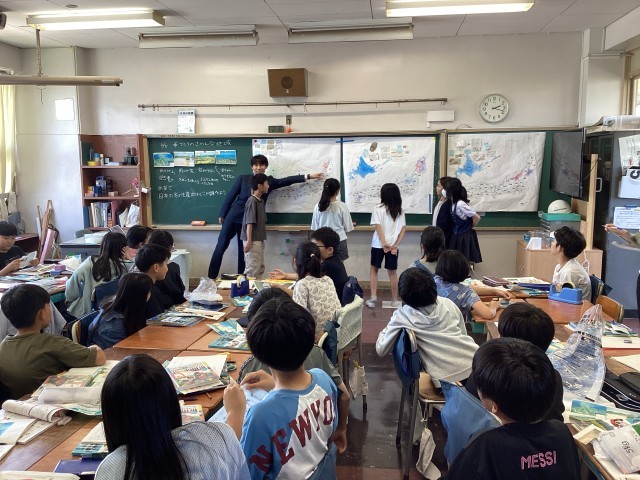 5時間目に教育実習生の研究授業がありました。5年1組で社会科の学習です。たくさんの先生が参観する中、一生懸命に子供たちに指導する様子は、見ている私も学ぶものがありました。