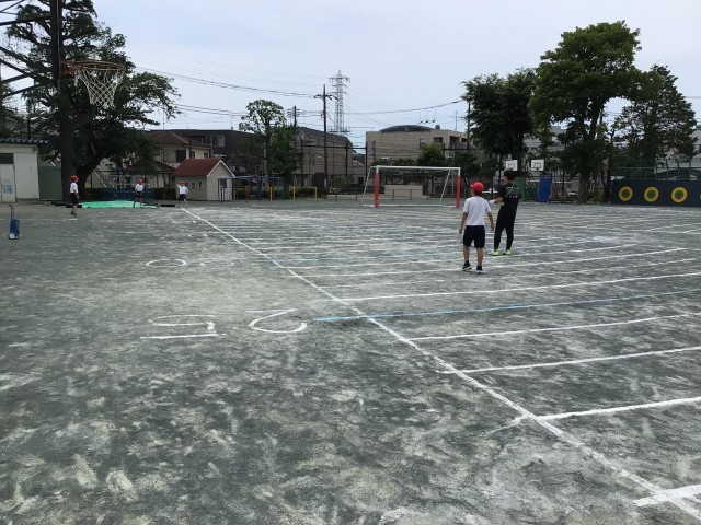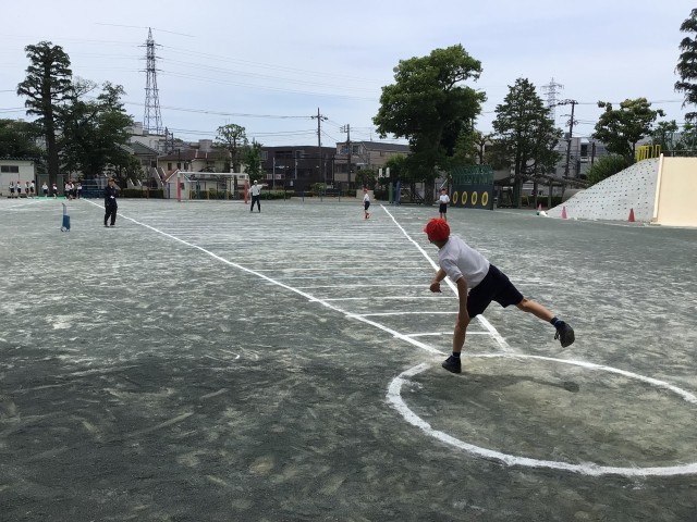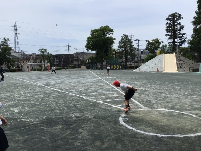 今日は、ソフトボール投げです。チャンスは1人2回です。