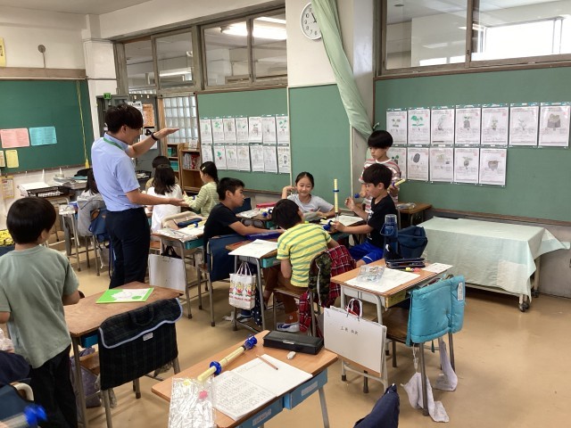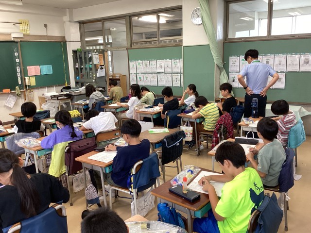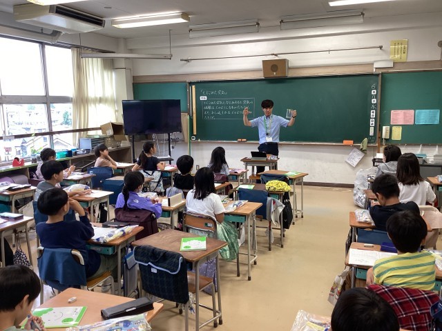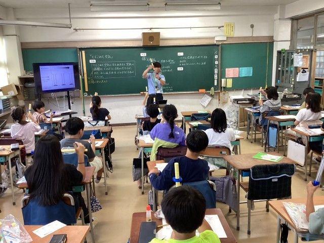 理科の学習です。閉じ込められた空気に力を加えるとどうなるかを実験しました。一人一人が道具を使って実験することができました。