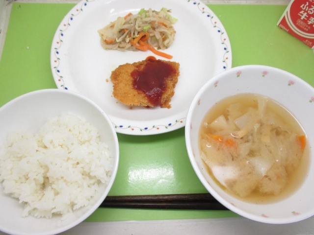 ごはん・牛乳・イカフライ・野菜のごまみそかけ・みそ汁