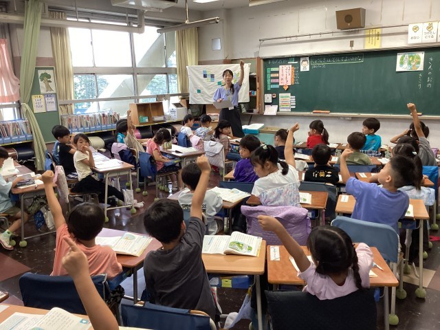 道徳の授業です。今日のお話は「お前が落としたのは・・」で有名な「金のおの」でした。正直にすることの大切さについて考える姿がありました。