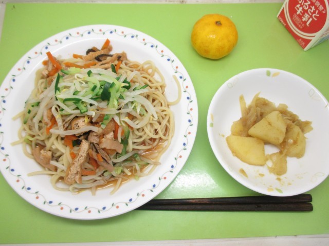 冷やし中華・牛乳・じゃがいものかつお節炒め・冷凍みかん