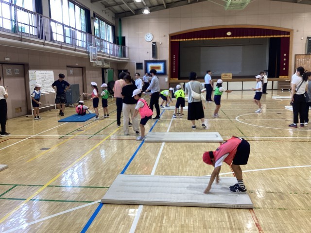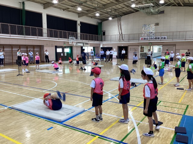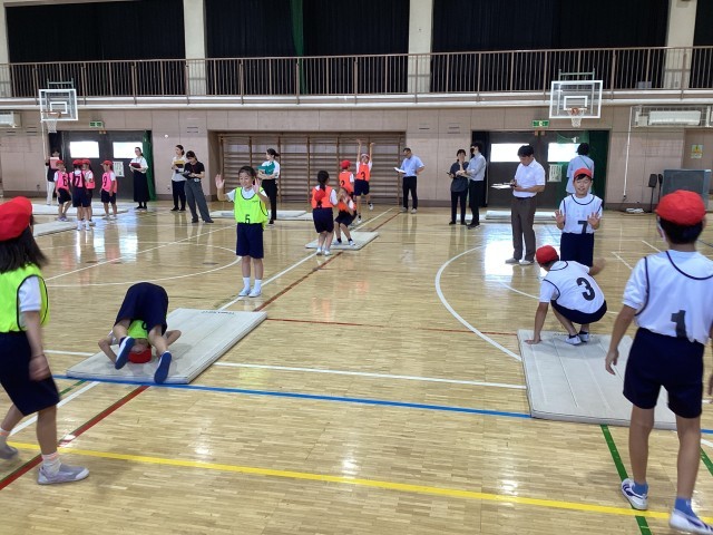 5時間目に体育の研究授業がありました。単元はマット運動。子ども達は自分で練習の計画を立て、タブレットを使ったり、友達からアドバイスをもらったりして技の習得や上達を目指しました。