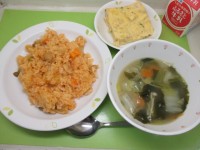 チキンライス・牛乳・スペイン風オムレツ・白菜のスープ