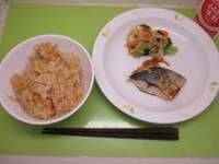 切り干し大根のごはん・牛乳・さばのごまだれ焼き・野菜のあえもの