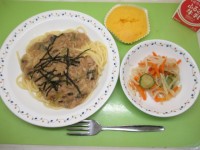 【3年生が考えた大根メニュー】大根のスパゲッティ・牛乳・もやしときゅうりのサラダ...