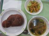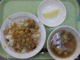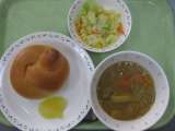ココアあげパン・肉だんごいり春雨スープ・かりかり豆サラダ・牛乳 主な食材...