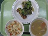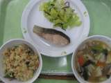 きのこごはん・さけのしおやき・きゃべつのしおこんぶ・はっとじる・牛乳 主な...