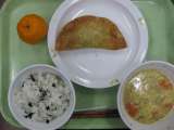 わかめとじゃこのごはん・じゃんぼぎょうざ・卵スープ・ぽんかん・牛乳 主な食...