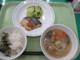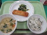ごまごはん・さけの塩焼き・かぶのゆず漬け・はっと汁・牛乳 今週から学校給食...