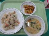 わかめとじゃこのごはん・彩野菜のはるまき・いそあえ・かきたまじる・牛乳 ...