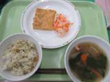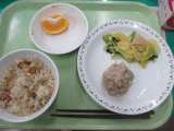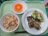 こぎつねごはん・ちくわの2色あげ・キャベツのあっさりあえ・菊花みかん・牛乳 ...