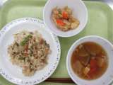 しめじごはん 牛乳 じゃがいものそぼろ煮 けんちん汁 <主な食材と産地> にん...