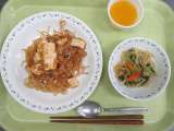 麻婆豆腐焼きそば 牛乳 ナムル みかんゼリー <主な食材と産地> にんにく ...
