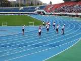 競技会の前には全員で400M公式トラックを走ります。「エンジョイランニング」スタ...