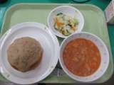 ビスキュイパン・ビーンズシチュー・野菜のイタリアンドレッシングかけ・牛乳 ...