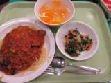 なすとベーコンのパスタ・ツナわかめサラダ・フルーツ寒天 給食委員会「苦手...