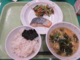 ごはん・さわらのしおこうじやき・ごまあえ・かきたま汁・ 手作り海苔の佃煮・...
