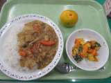 きのこのカレーライス・ほくほくサラダ・牛乳 今日は、5年生の給食委員会の児...