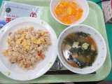 山坂達者めし・じゃんぼシュウマイ・やさいのあえもの・みかん・牛乳